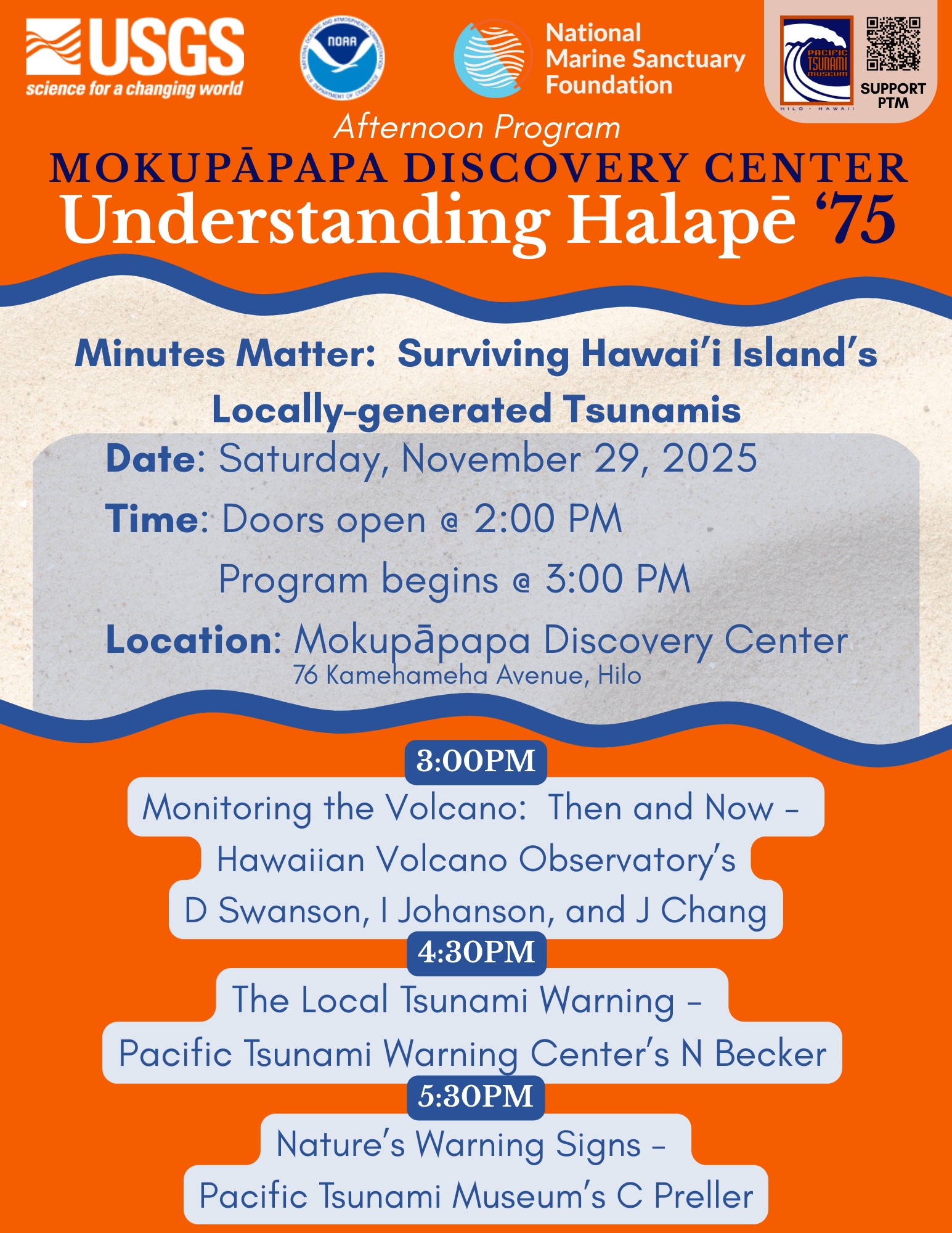 Join PTM’s Executive Director, Cindi Preller, and experts from the Hawaiian Volcano Observatory and Pacific Tsunami Warning Center to explore Hawaiʻi’s locally-generated tsunamis and how preparedness saves lives.